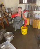 make soap using buckets, mixers connected to electric drills, and molds. However, the team aimed to upgrade the operation by constructing a factory.
